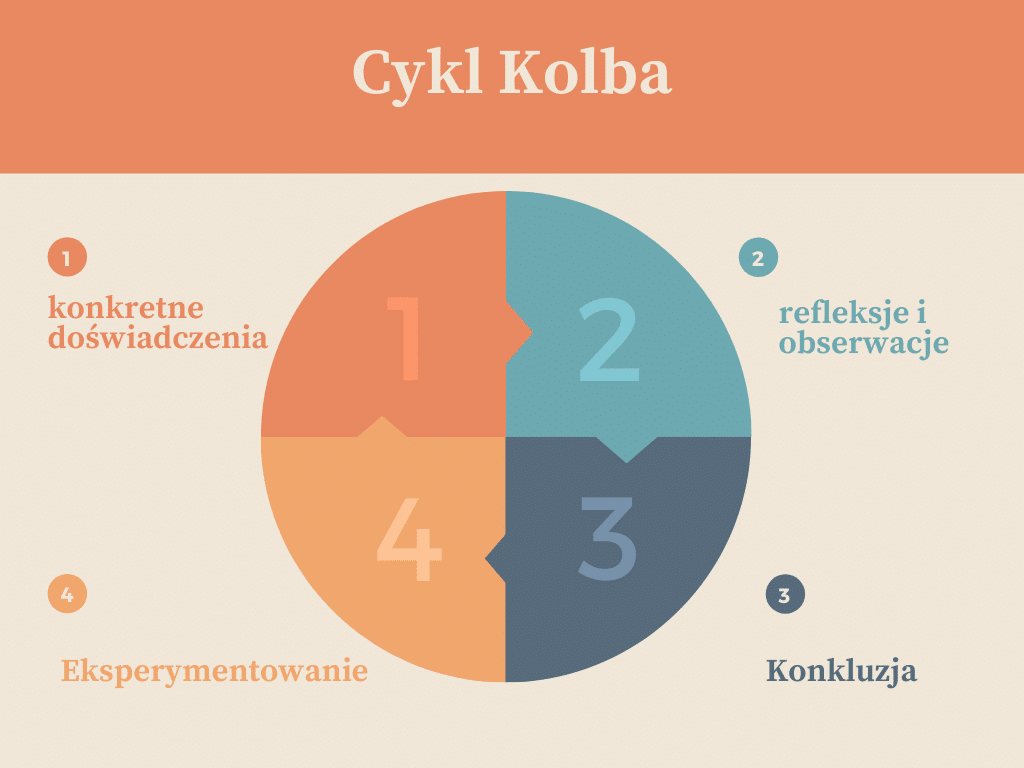 Według Kolba wiedzę zdobywa się poprzez praktykę i doświadczenie. Pewne konkretne doświadczenie skłania do rozumnej obserwacji i refleksji. Ta refleksja powoduje tworzenie reguł generalizujących, służących nie tyle do opisania jednego konkretnego zdarzenia, ale wszystkich jemu podobnych. Powstała w ten sposób wiedza jest następnie weryfikowana przez sprawdzenie nowego pomysłu w praktyce, co prowadzi do powstania nowych doświadczeń i cykl zaczyna się od początku.