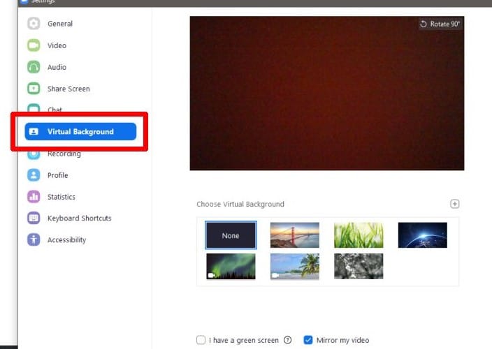 - Kliknij opcję VIRTUAL BACKGROUND (wirtualne tło), możemy wybierać spośród kilku szablonów.